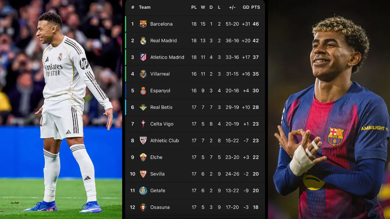 How does the La Liga 2025/26 Points Table look going into the Winter break? By Meet Unnadkat | December 22, 2025